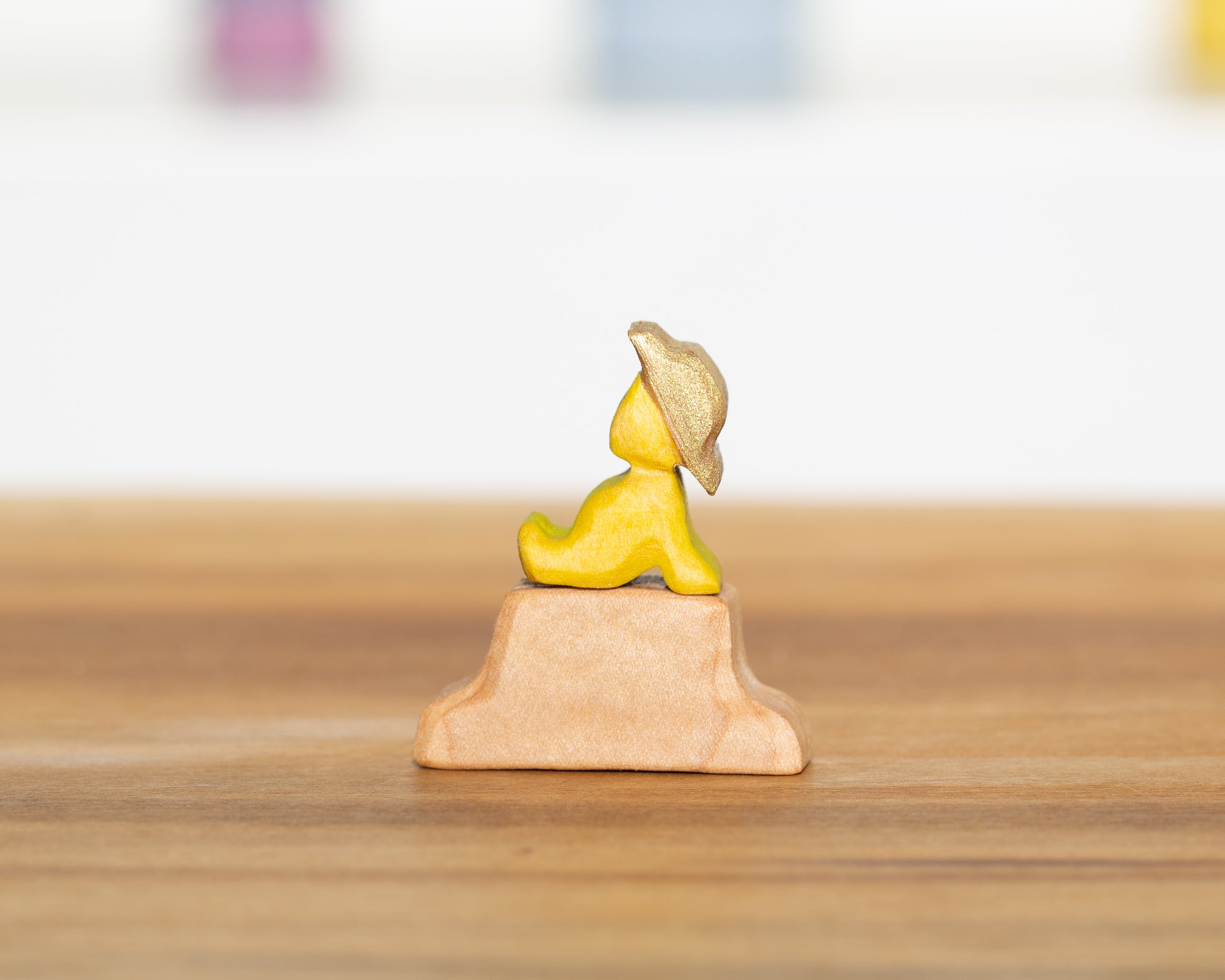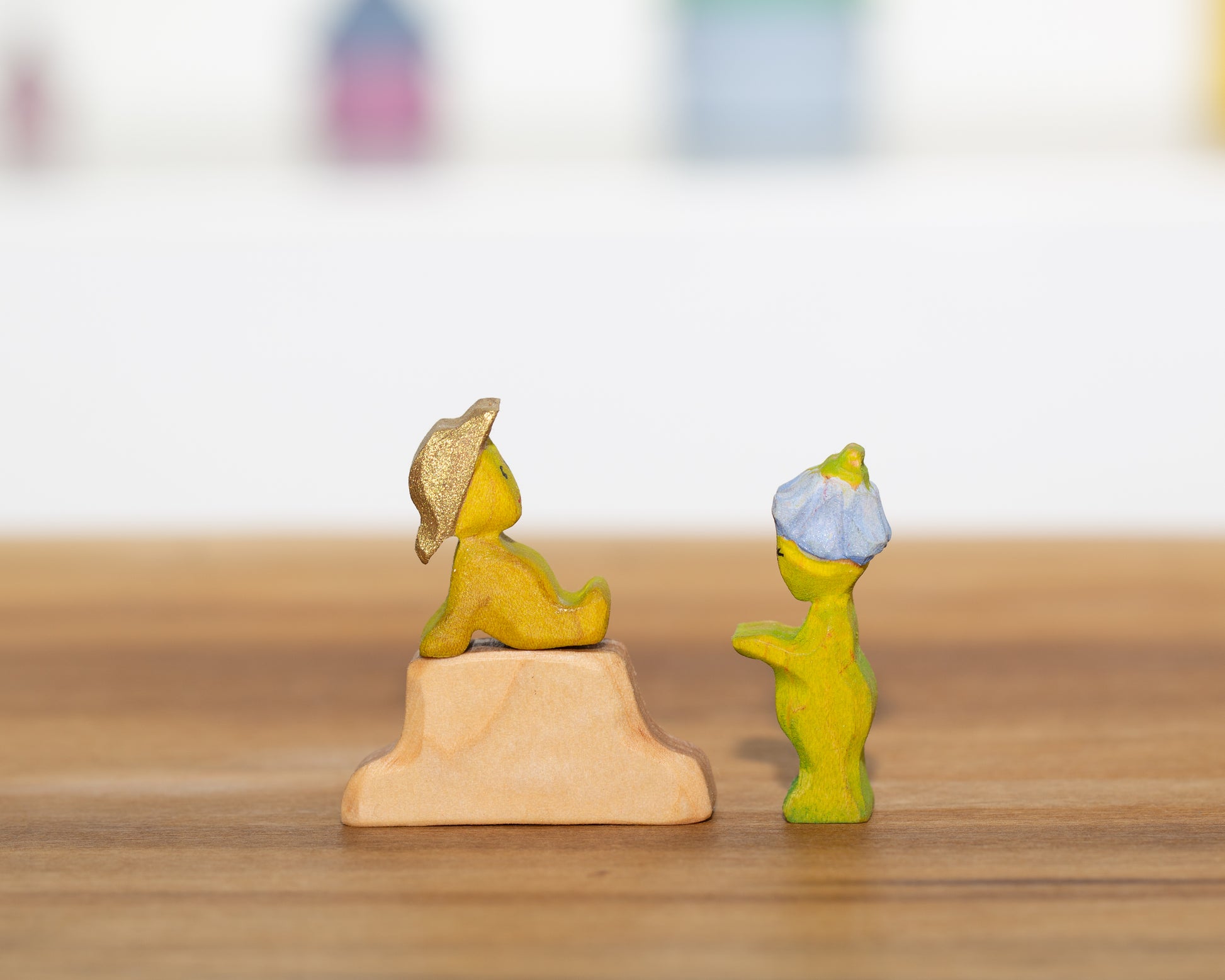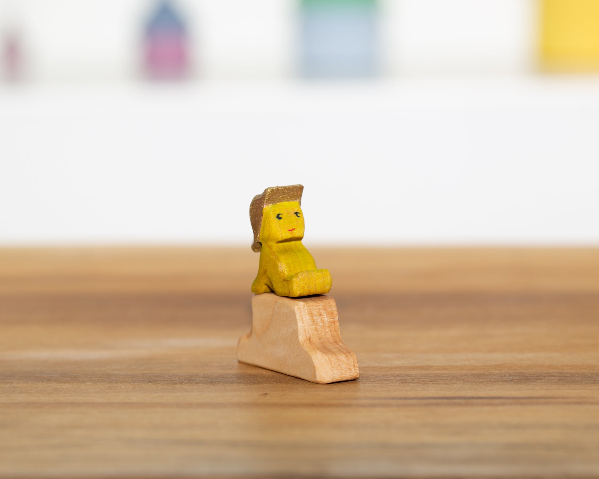 Little garden sprite made from maple with tree stump. Painted with watercolors, acrylic details and finished with linseed oil and beeswax blend.