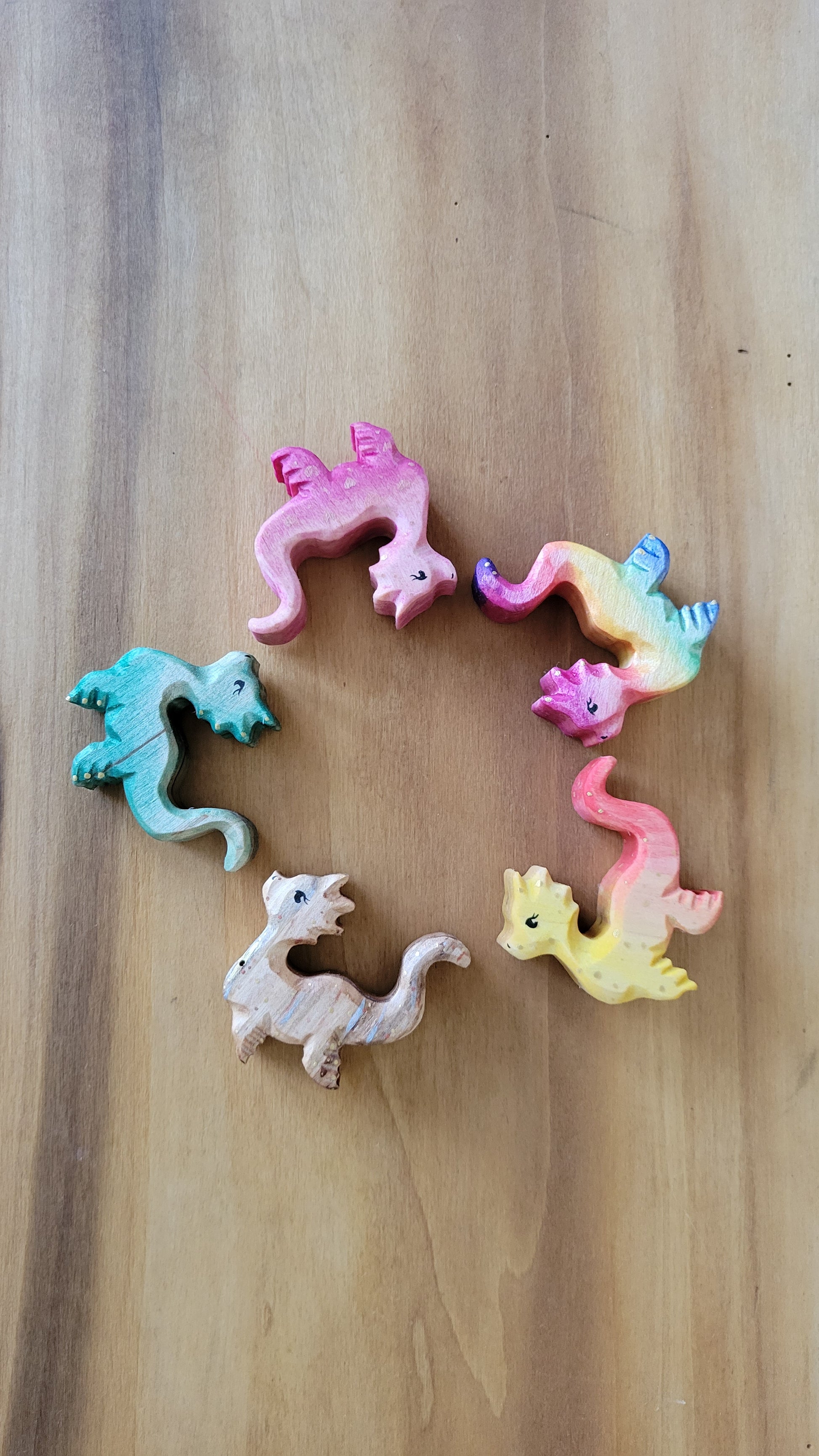 Sea Pony set made from Ambrosia Maple. Painted with nontoxic watercolors and acrylic paint details.
