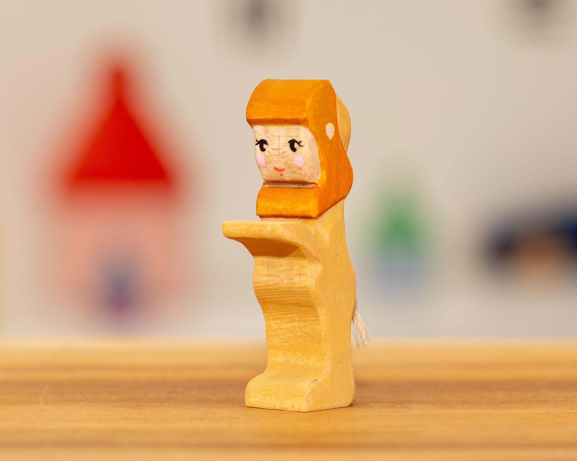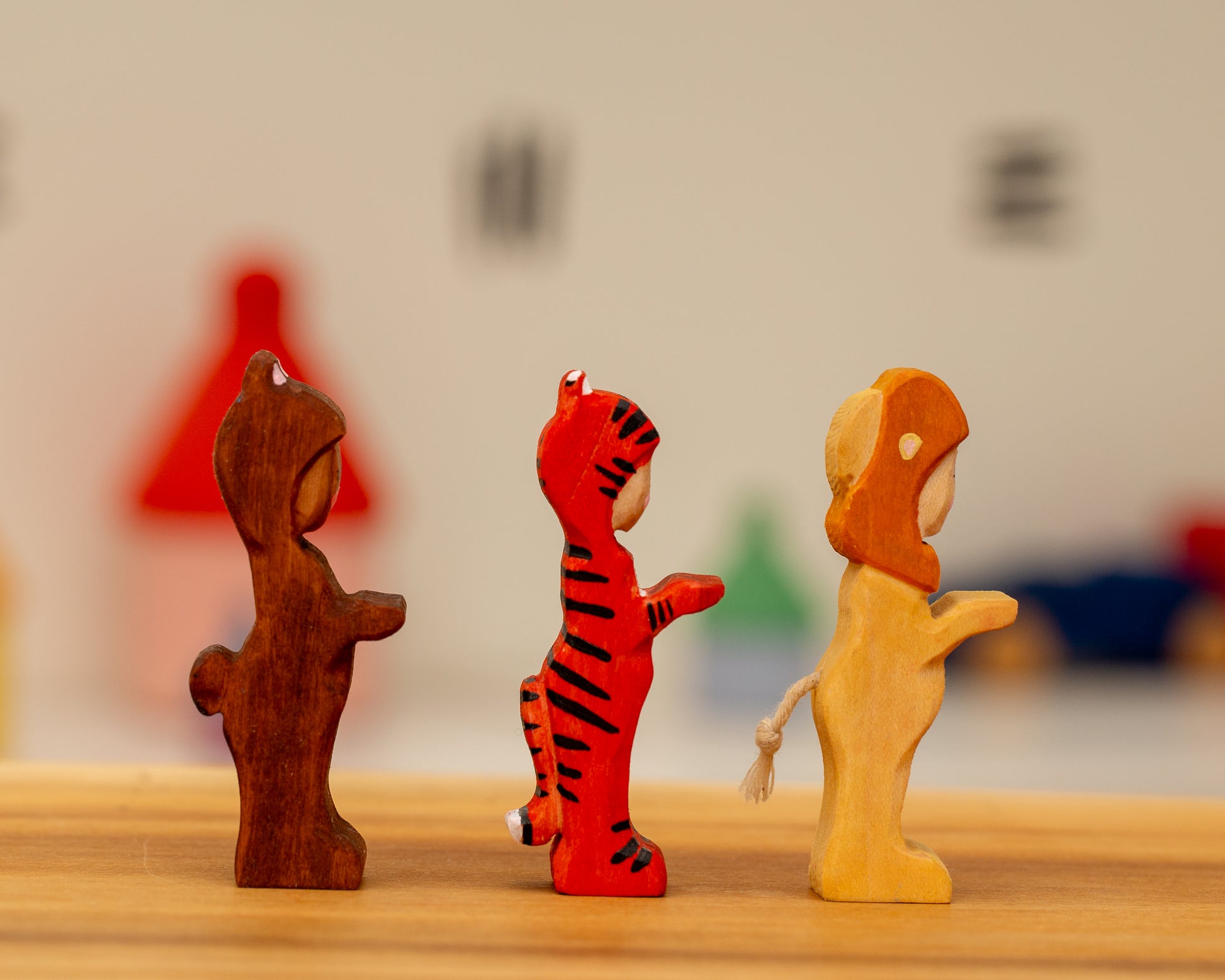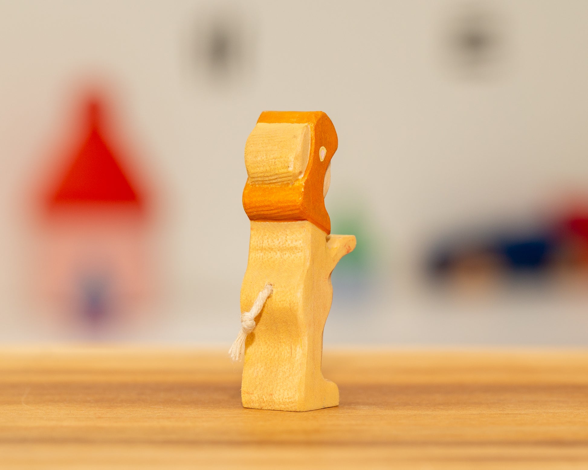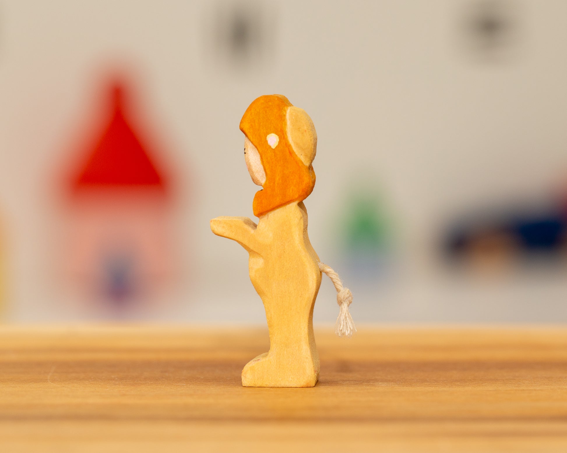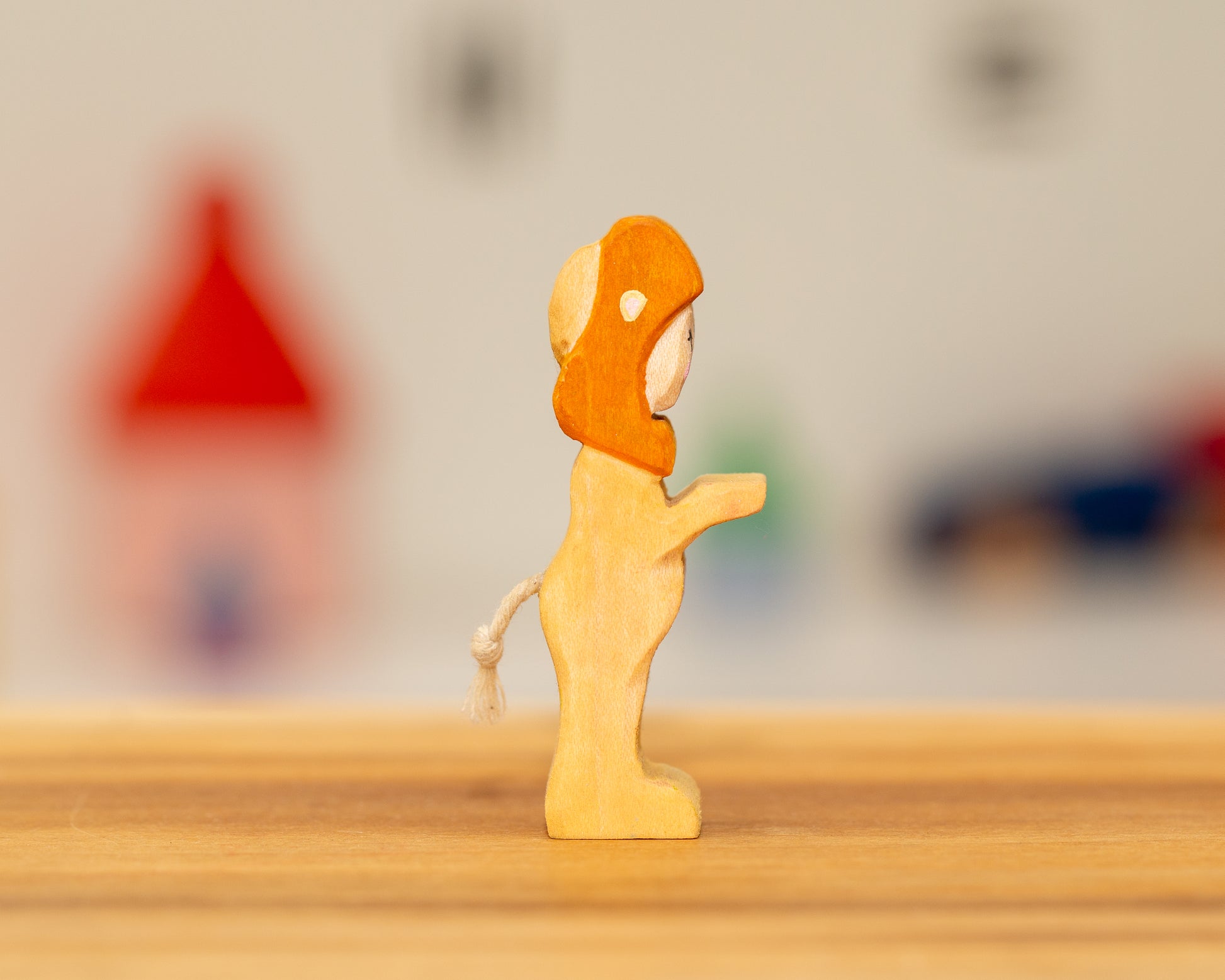 Maple Lion child. Maple painted with non toxic watercolors and acrylic details. Tail is cotton rope.