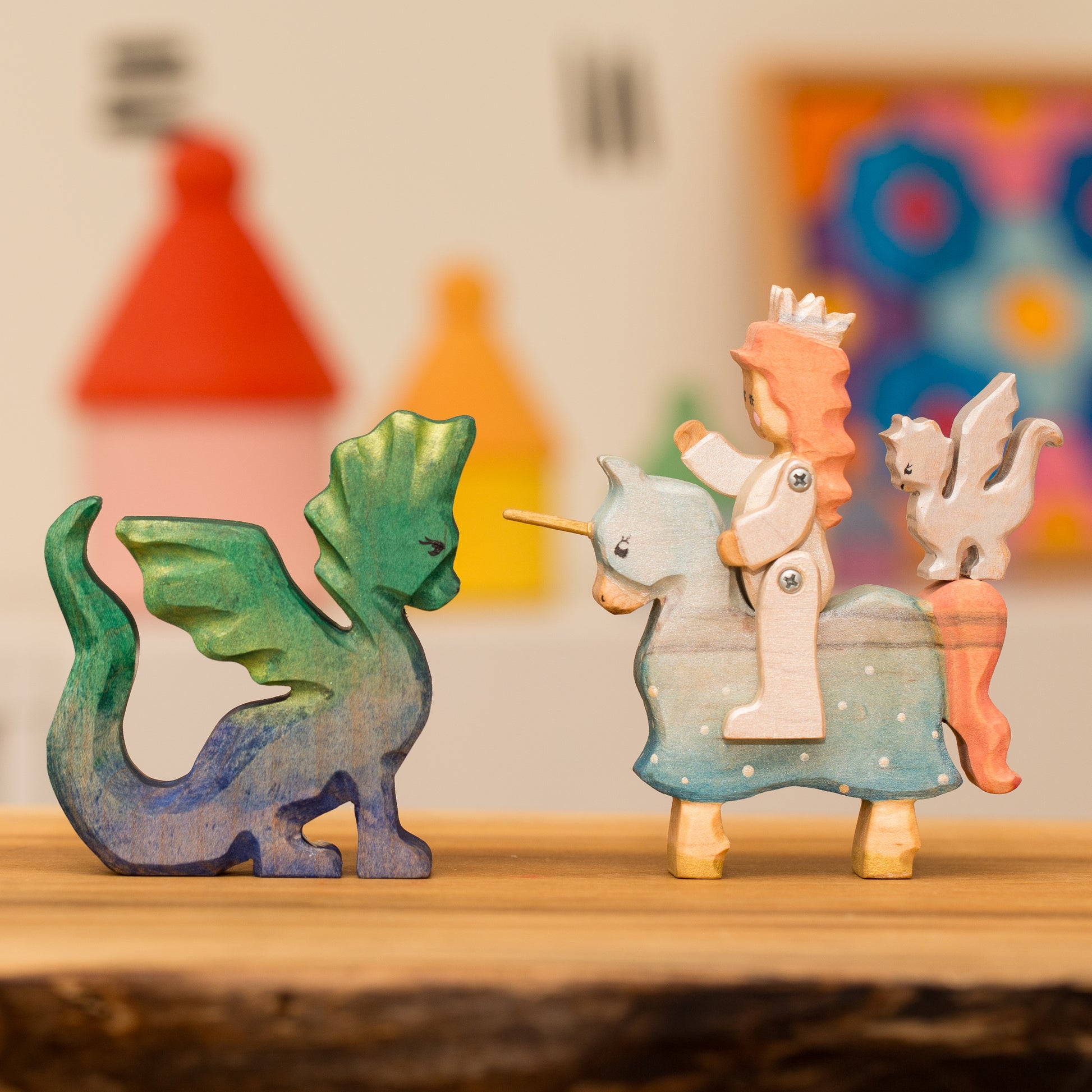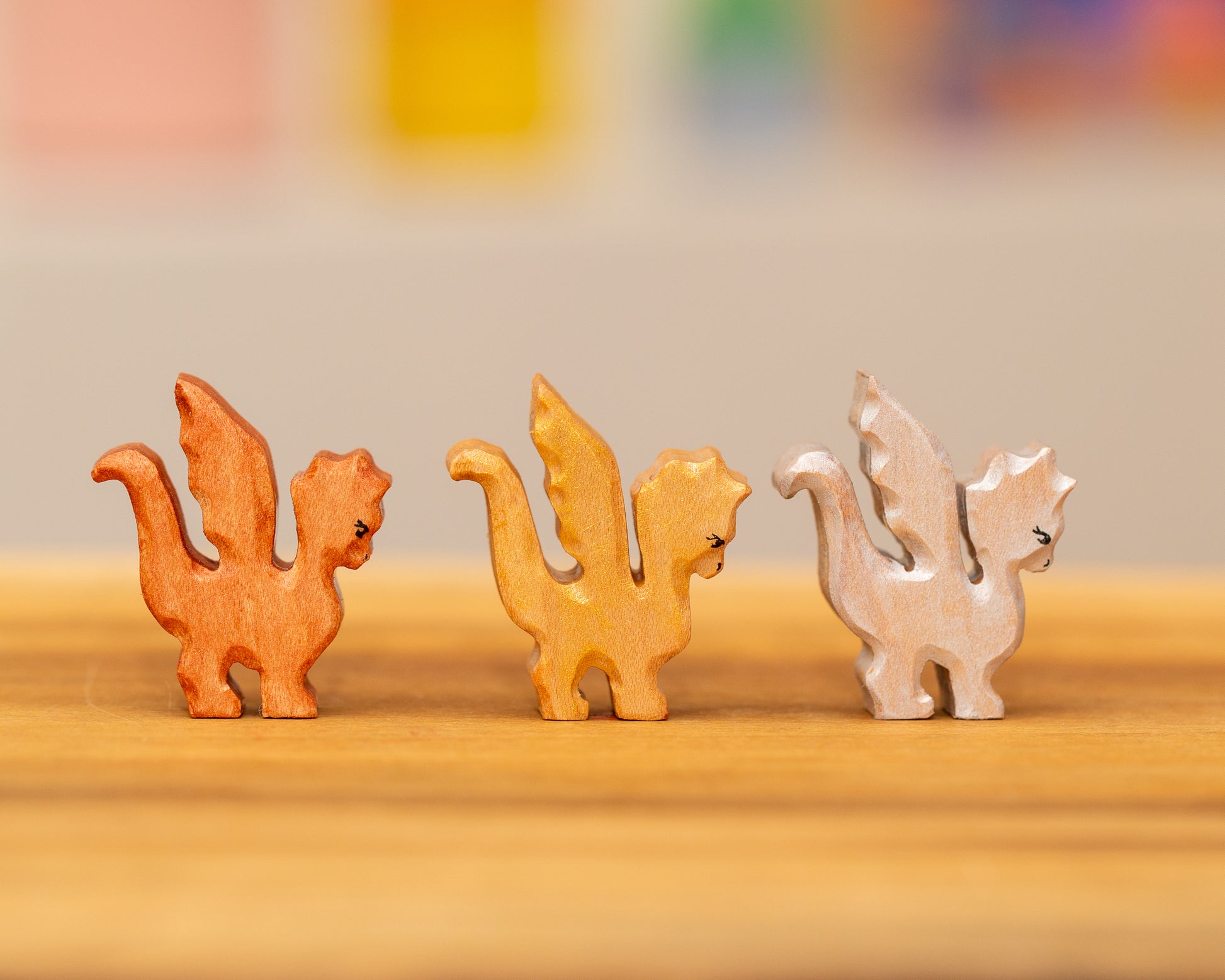 Dragon made from hard maple. Painted with watercolors and acrylic details finished with a linseed oil beeswax blend.