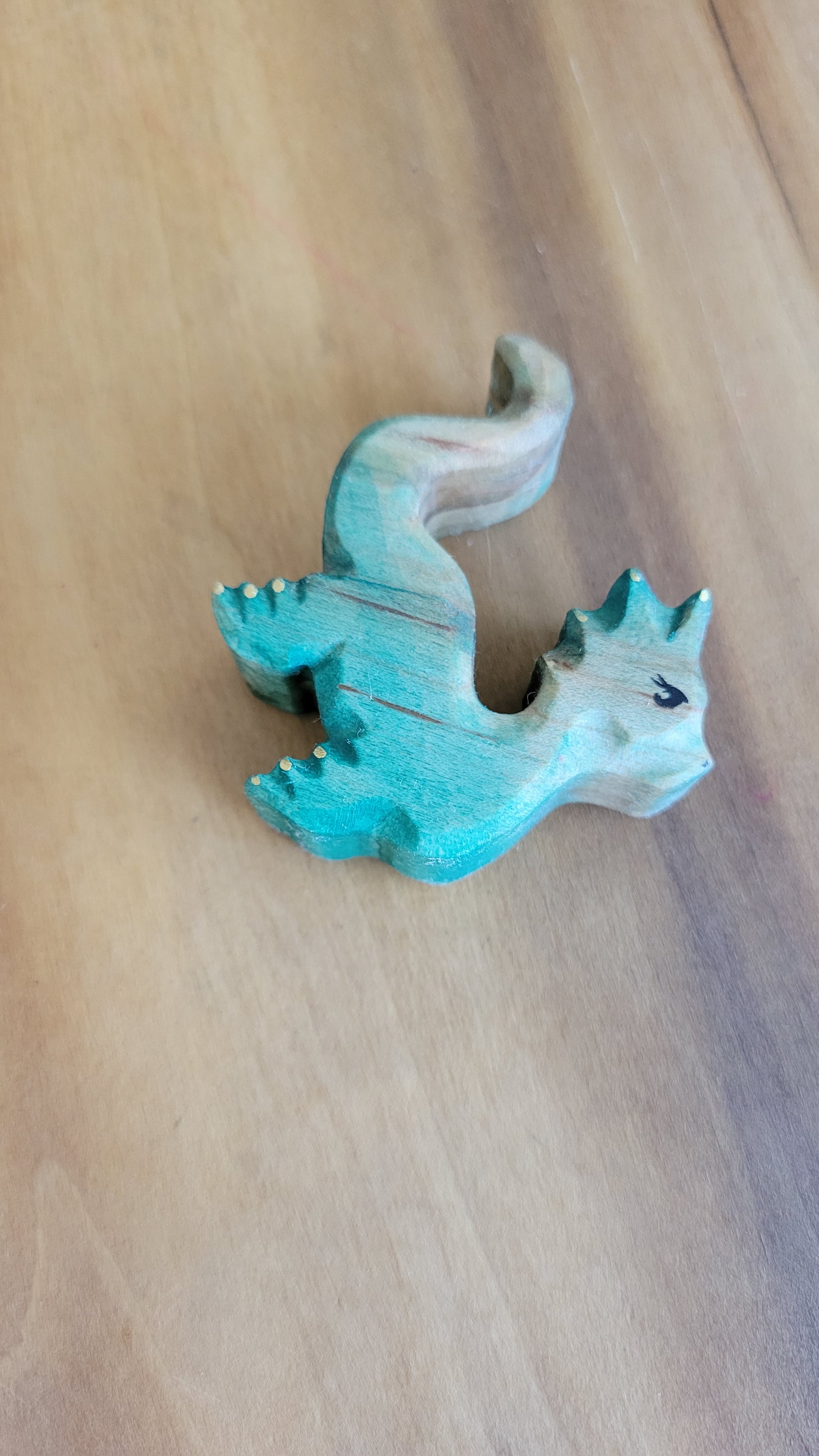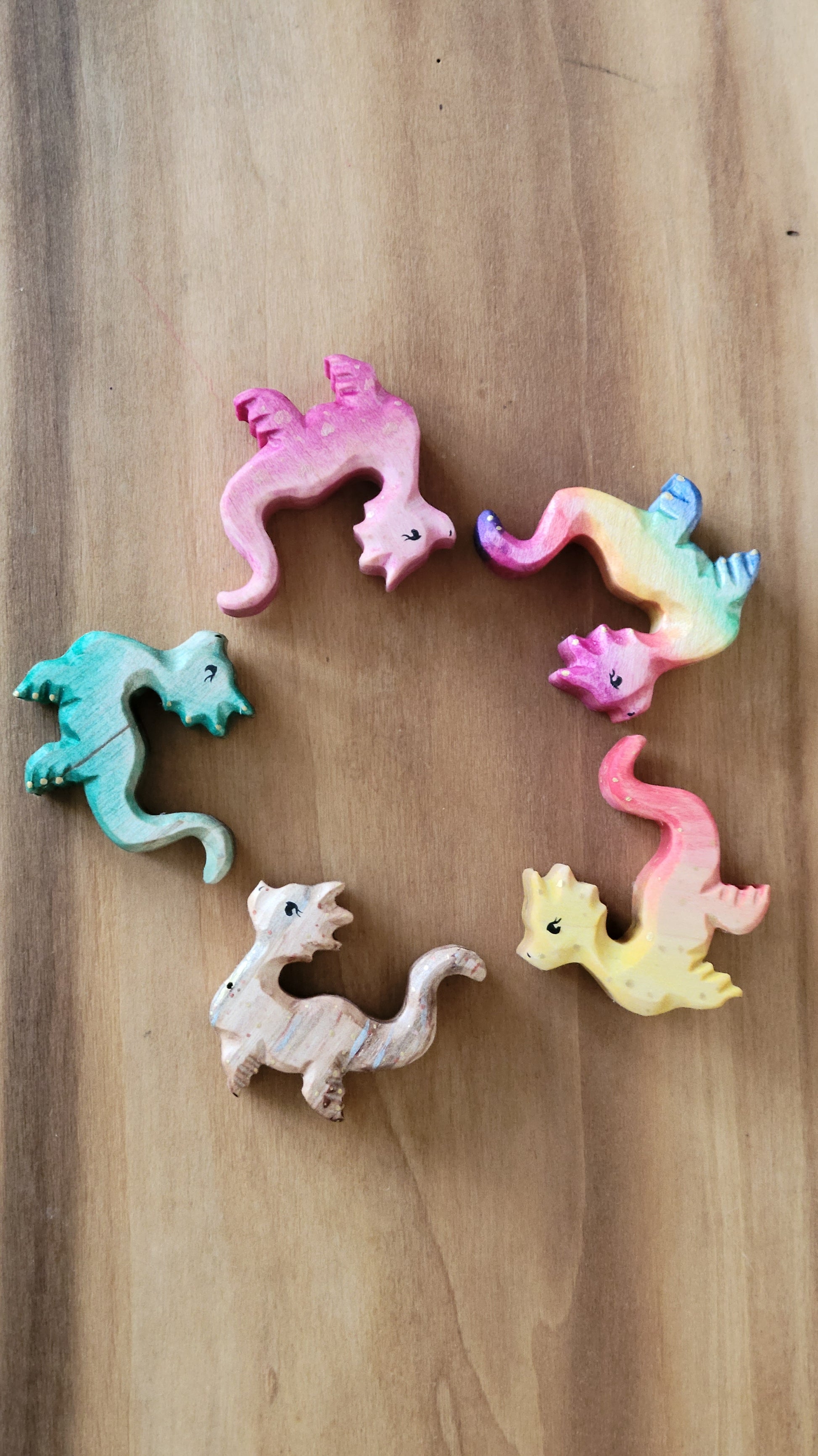 Sea Pony set made from Ambrosia Maple. Painted with nontoxic watercolors and acrylic paint details.