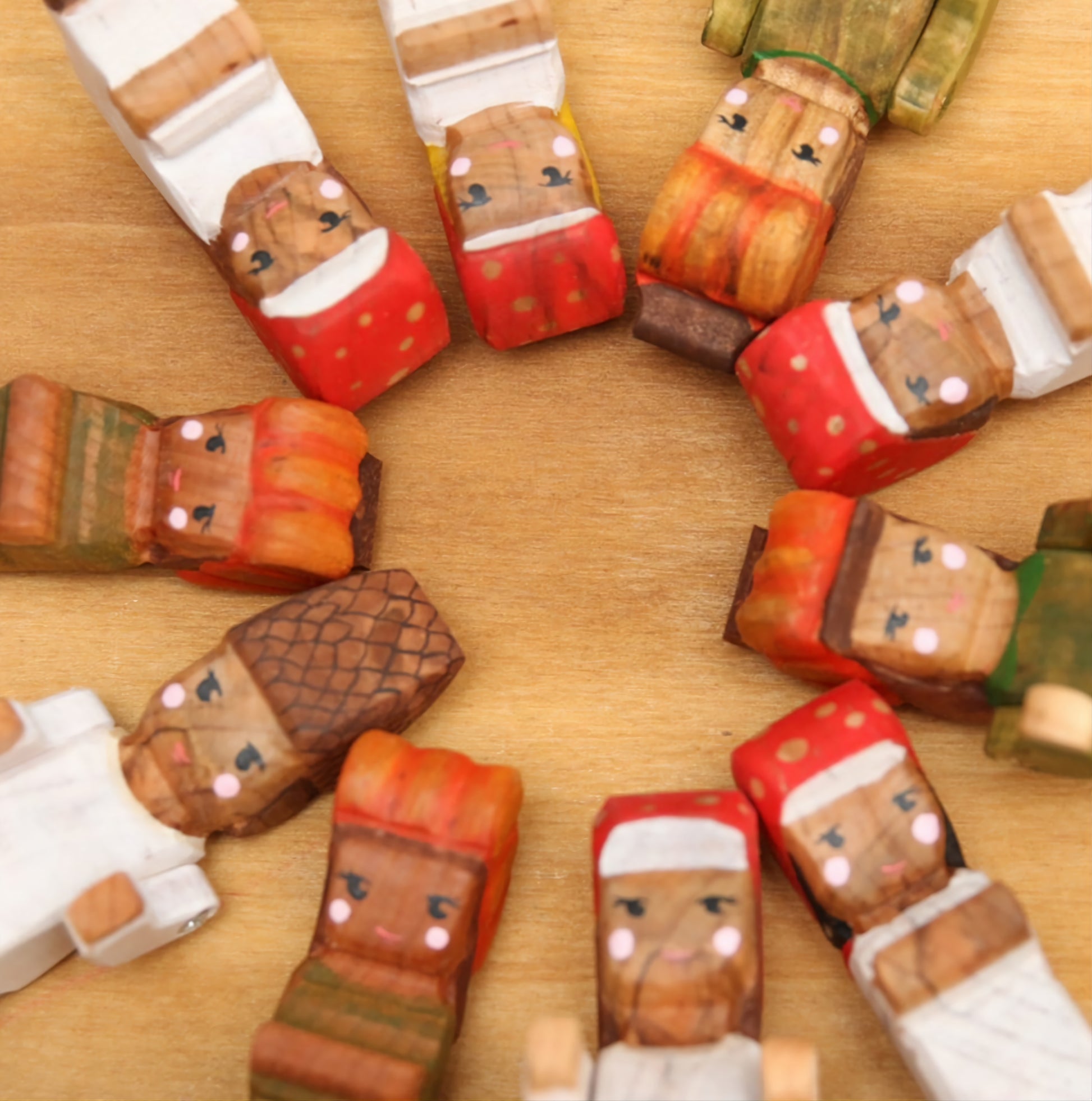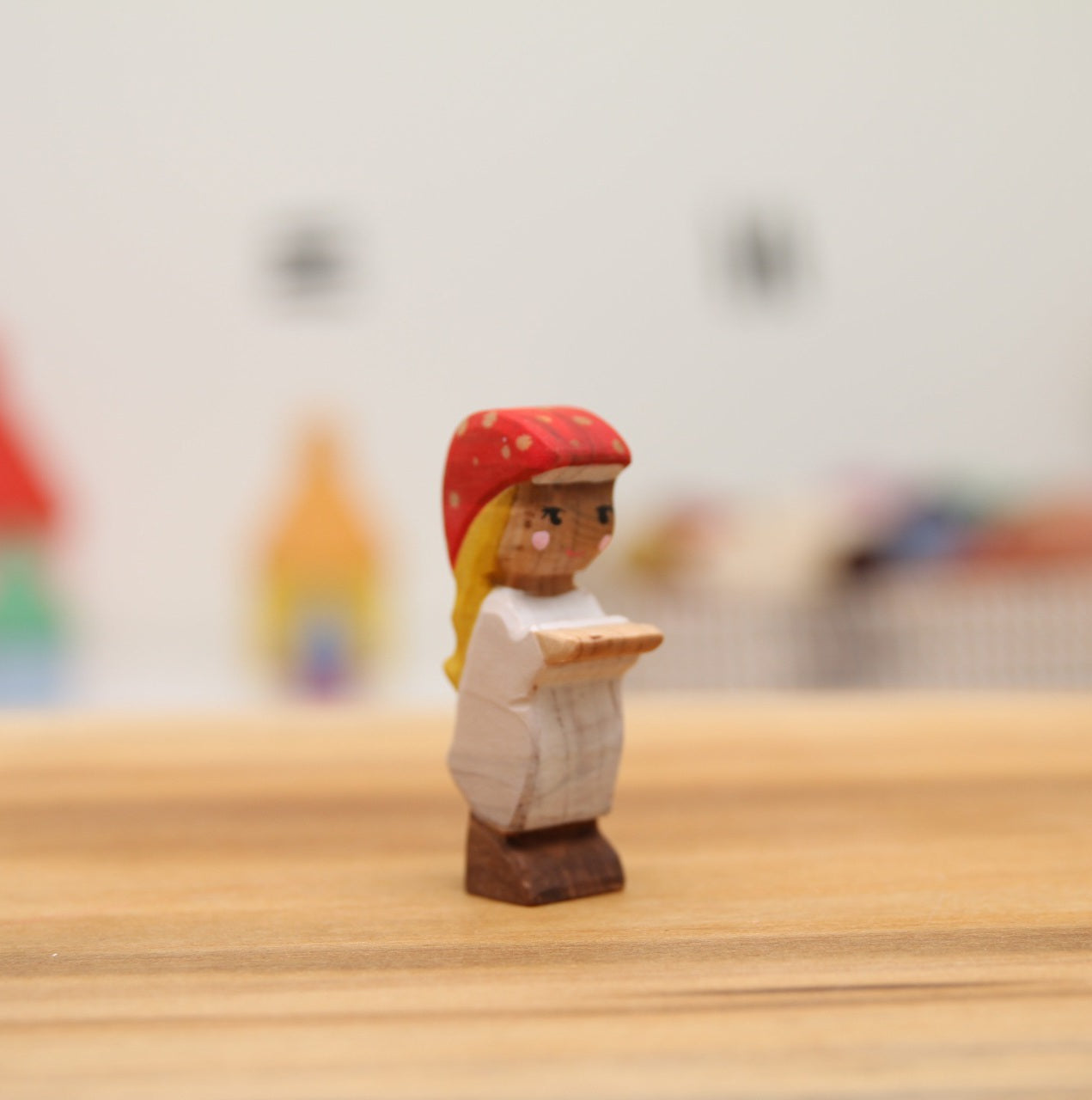 Mushroom child made from Ambrosia maple. Watercolors and acrylic details. Conditioned with linseed oil beeswax blend.