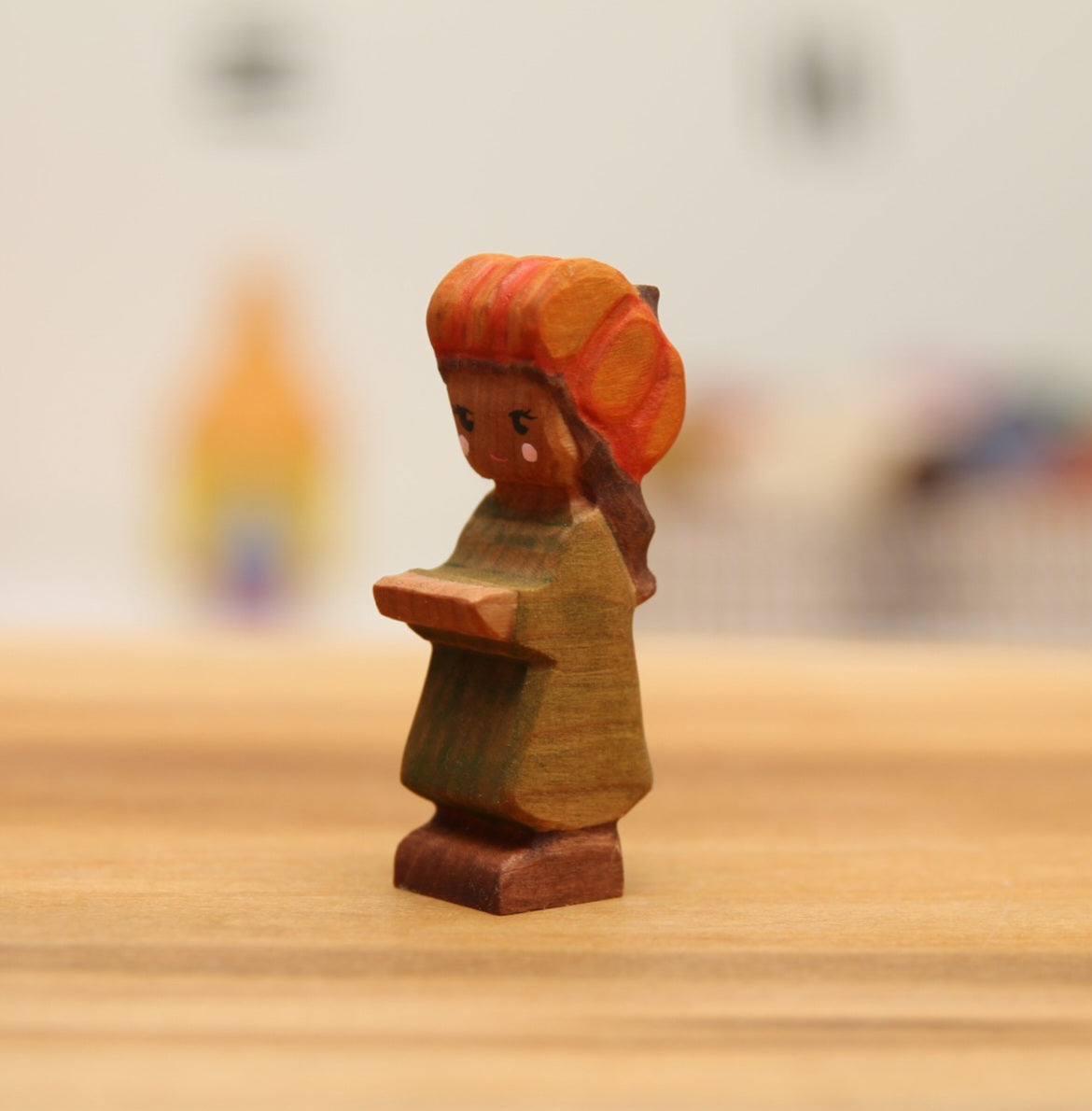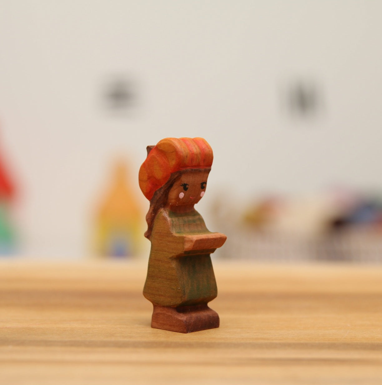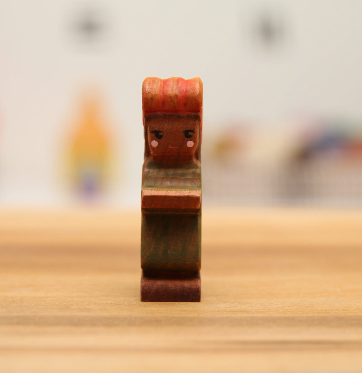 Pumpkin child made from cherry. Watercolors and acrylic details. Conditioned with linseed oil beeswax blend.