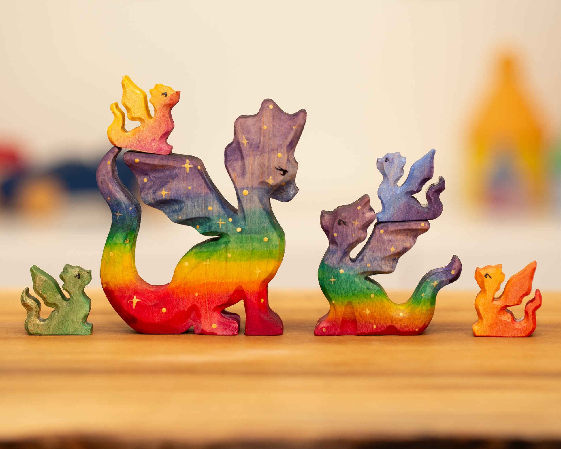 Dragon made from curly maple. Painted with watercolors and acrylics finished with a linseed oil beeswax blend.