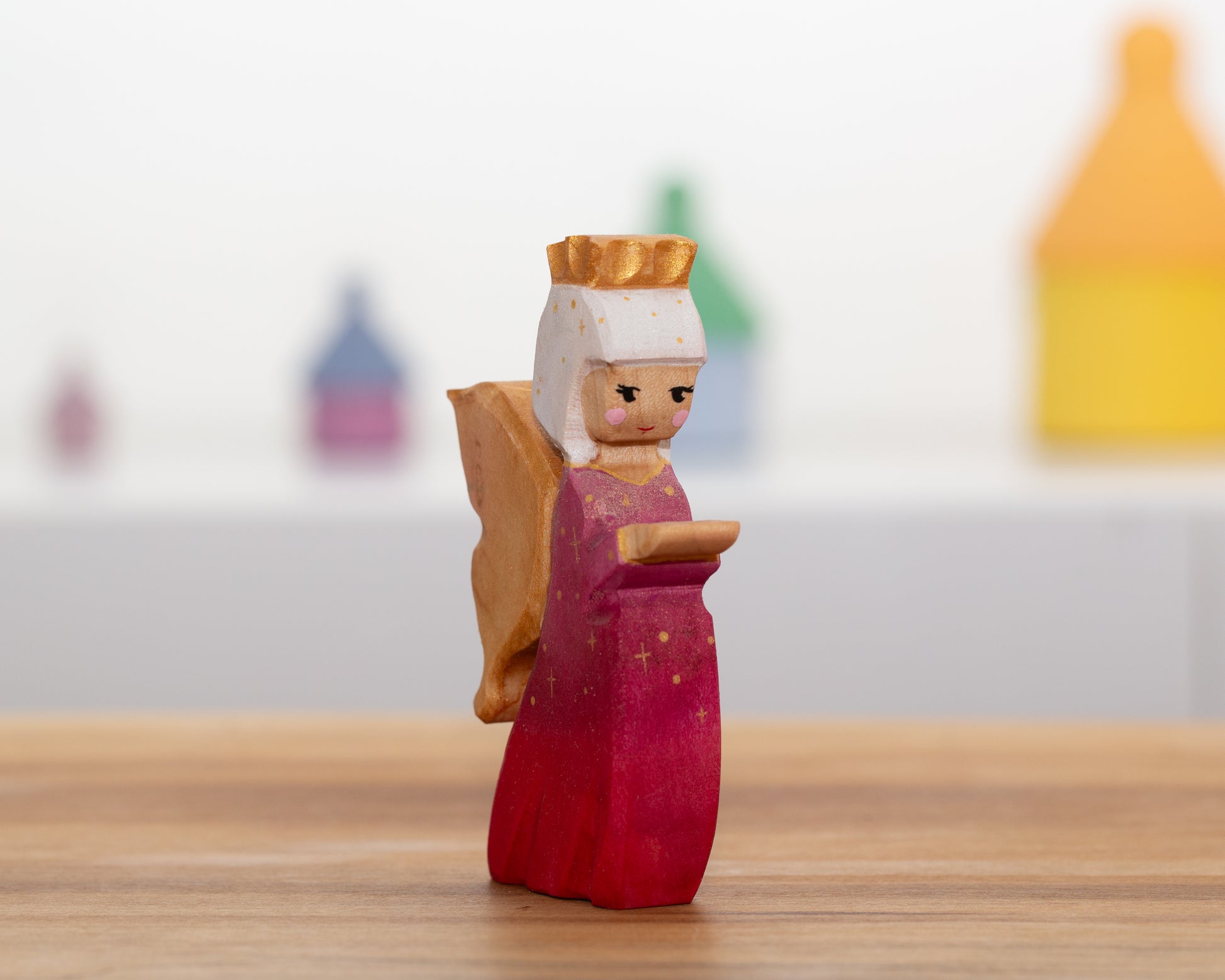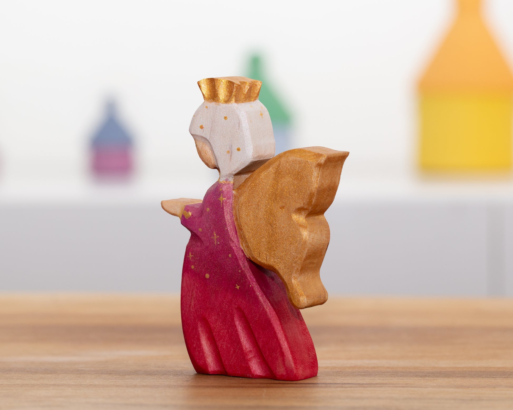 Fairy made from hard maple. Painted with watercolors acrylic details and finished with linseed oil and beeswax blend.