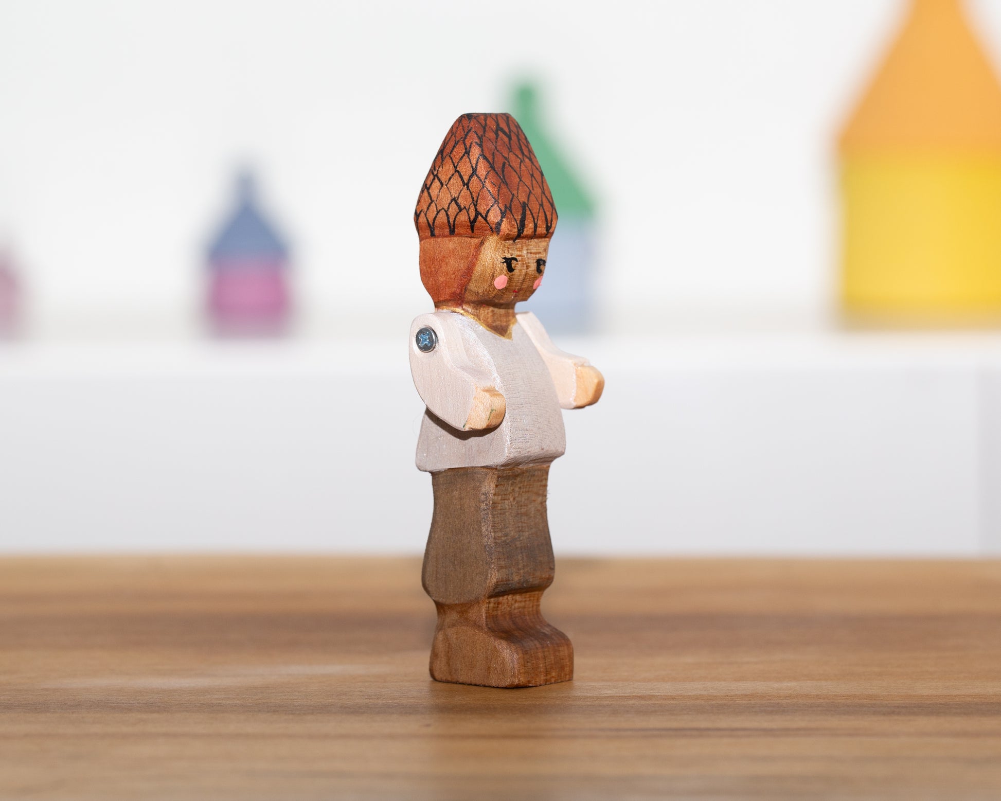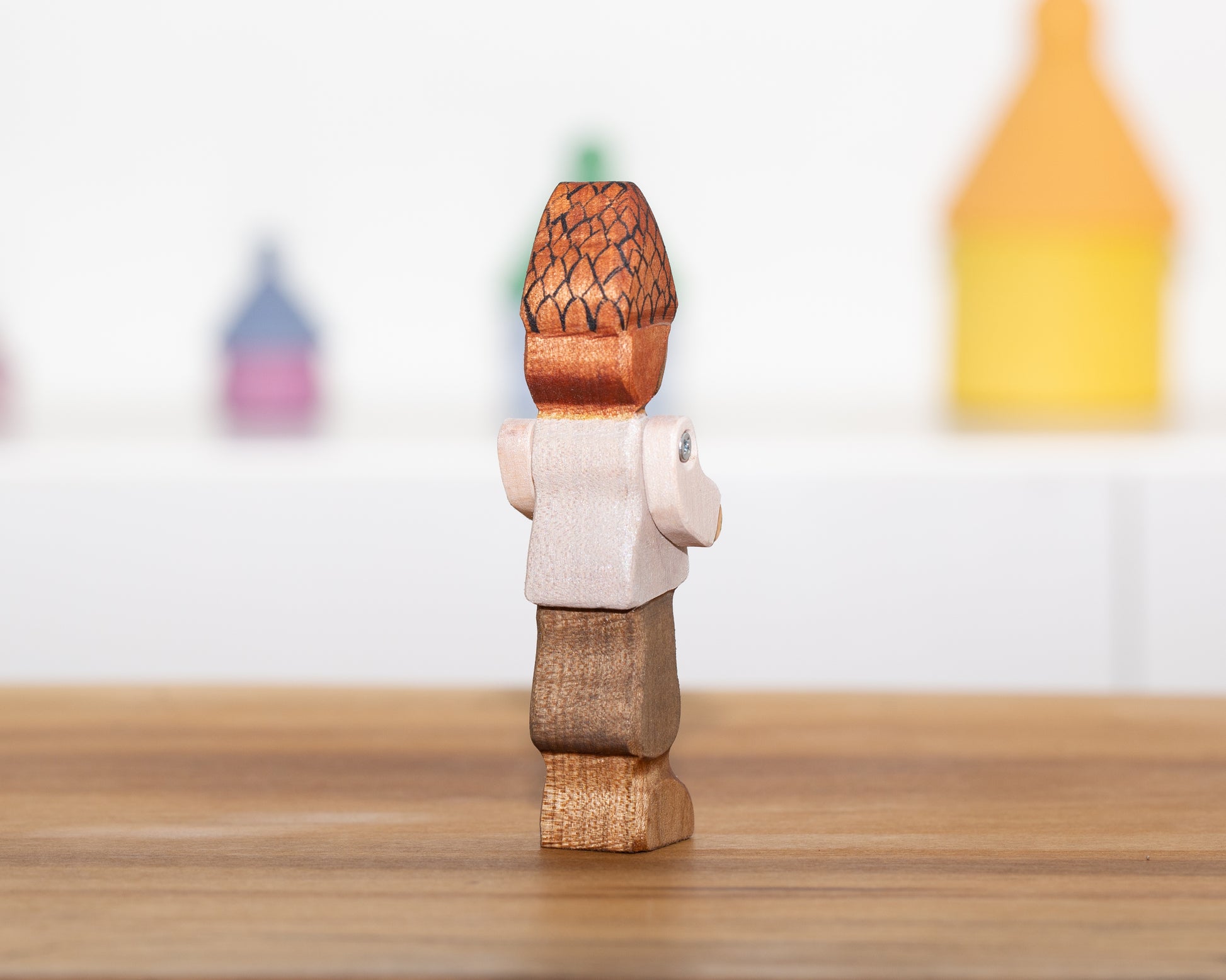 Pine cone child made from Ambrosia maple. Watercolors and acrylic details. Conditioned with linseed oil beeswax blend.